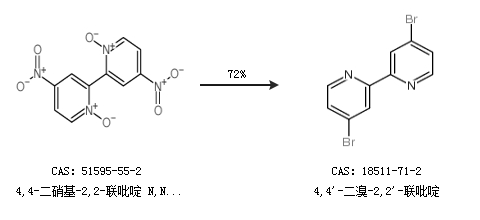 2.通過4,4-二硝基-2,2-聯(lián)吡啶 N,N-二氧化物合成4,4''-二溴-2,2''-聯(lián)吡啶,收率約72%;