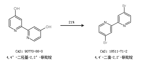 1.通過4,4’-二羥基-2,2’-聯(lián)吡啶合成4,4''-二溴-2,2''-聯(lián)吡啶,收率約21%;