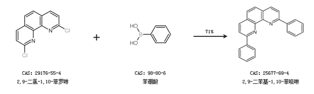 2.通過(guò)2,9-二氯-1,10-菲羅啉和苯硼酸合成2,9-二苯基-1,10-菲咯啉,收率約71%;