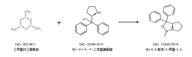 1.通過(guò)三甲基環(huán)三硼氧烷和(R)-(+)-α,α-二苯基脯氨醇合成(R)-5,5-聯(lián)苯-2-甲基-3,4-丙醇-1,3,2-惡唑硼烷