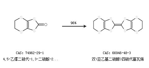 2.通過(guò)4,5-乙撐二硫代-1,3-二硫酚-2-酮合成雙(亞乙基二硫醇)四硫代富瓦烯,收率約96%;