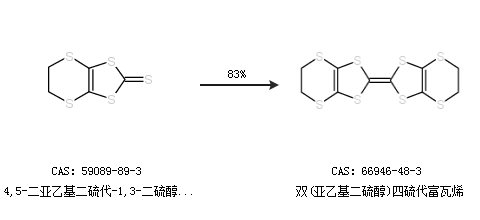 1.通過(guò)4,5-二亞乙基二硫代-1,3-二硫醇-2-硫酮合成雙(亞乙基二硫醇)四硫代富瓦烯,收率約83%;