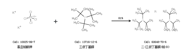 1.通過氯亞鉑酸鉀和三叔丁基膦合成二(三叔丁基膦)鉑(0),收率約81%;