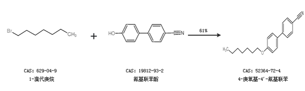 1.通過1-溴代庚烷和氰基聯(lián)苯酚合成4-庚氧基-4''-氰基聯(lián)苯,收率約61%;