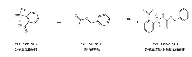 1.通過(guò)2-硝基苯磺酰胺和氯甲酸芐酯合成N-芐氧羰基-2-硝基苯磺酰胺,收率約88%;