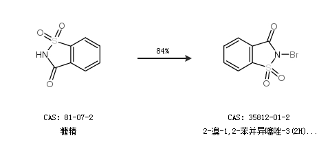 1.通過糖精合成2-溴-1,2-苯并異噻唑-3(2H)-酮 1,1-二氧化物,收率約84%;