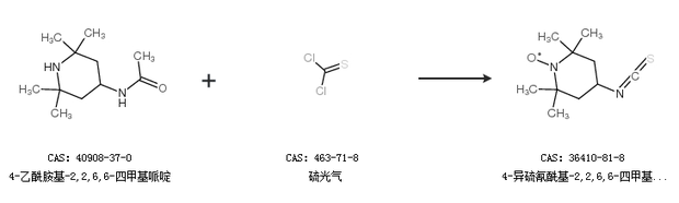 1.通過4-乙酰胺基-2,2,6,6-四甲基哌啶和硫光氣合成4-異硫氰;-2,2,6,6-四甲基哌啶1-氧基自由基