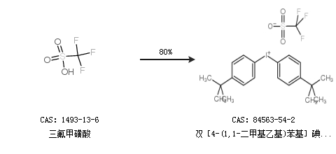 1.通過(guò)三氟甲磺酸合成雙[4-(1,1-二甲基乙基)苯基]碘鎓與三氟甲磺酸的鹽,收率約80%;